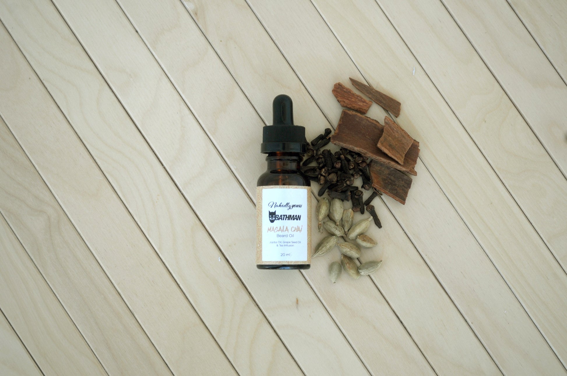 Jojaba Oil, Grape Seed Oil, Tea infusion, Cinnamon, Cardamon, Clove & Bayleaf Extract