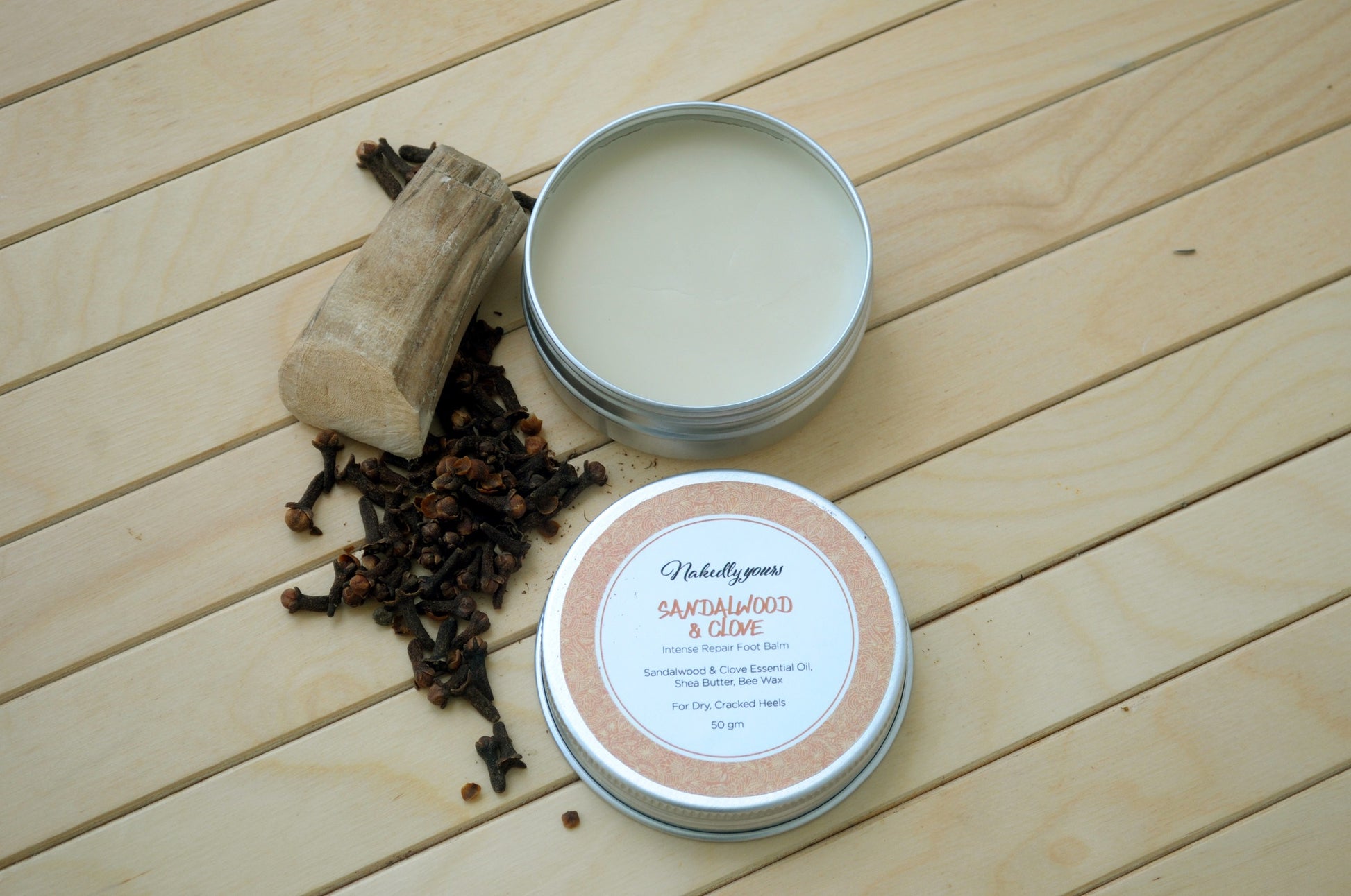 Clove is a natural antiseptic and it numbs the pain from cracked and dry feet. Its antibacterial properties help heal the cracks. Sandalwood oil helps repair skin and regenerate new skin cells..